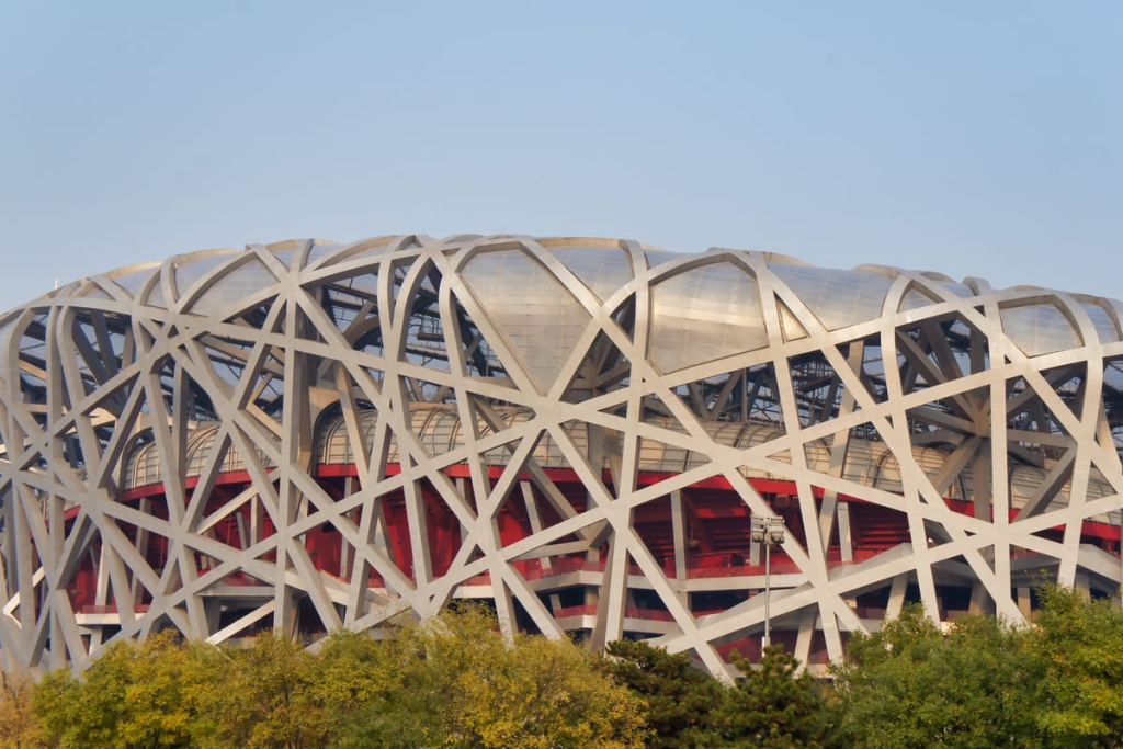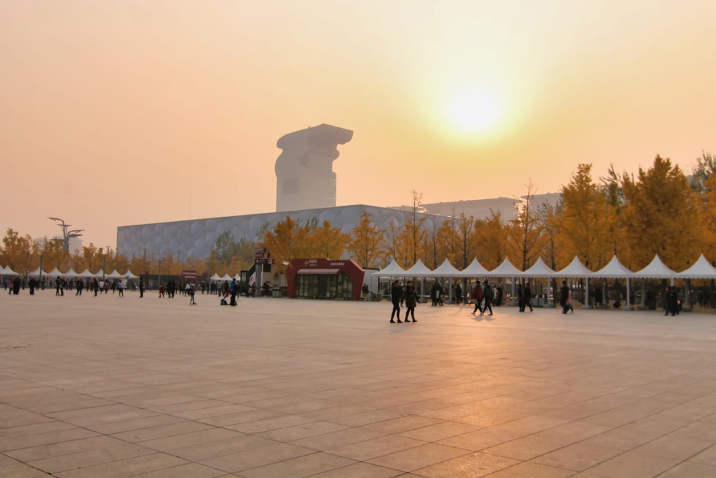 Das Olympiastadion in Peking wird aufgrund seiner Form und der Stahlträger, die sich um das 330 Meter lange Gebäude schlingen, auch Vogelnest genannt. Hier wurden 2008 die Olympischen Sommerspiele abgehalten. Laut der federführenden Architekten sollte das Vogelnest für Peking das werden, was der Eiffelturm für Paris ist. Ob das gelungen ist, muss jeder Besucher selbst entscheiden. Bereits tagsüber bietet der Koloss aus 42.000 Tonnen Stahl einen imposanten Anblick. Seine wahre Pracht entfaltet das Stadion jedoch erst nach Einbruch der Dunkelheit, wenn sich die opulent beleuchtete Konstruktion im Wasser spiegelt. Eine Besichtigung kostet umgerechnet 5 Euro und verschafft Zutritt zum – bis auf einige Snackbuden weitgehend leeren – Innenraum. Für 10 Euro könnt ihr mit dem Aufzug auf den sogenannten Air Corridor fahren. Die Sicht ist jedoch durch die Stahlkonstruktion stark eingeschränkt. Wer sich nicht glühend für Stadien interessiert, kann auf die Besichtigung verzichten und den Anblick von außen genießen. Das Olympiastadion wird heute nicht nur sportlich genutzt, auch Konzerte und Schönheitswettbewerbe finden dort statt. Rund um das Stadion geht es lebhaft zu, zahlreiche Jogger und Inlineskater sind hier anzutreffen – kein Wunder bei einer solch beeindruckenden Kulisse. Wenn ihr schon beim Stadion seid, solltet ihr euch auch die Olympische Schwimmhalle ansehen, deren wabenartige Fassade nachts in blauem Licht erstrahlt.