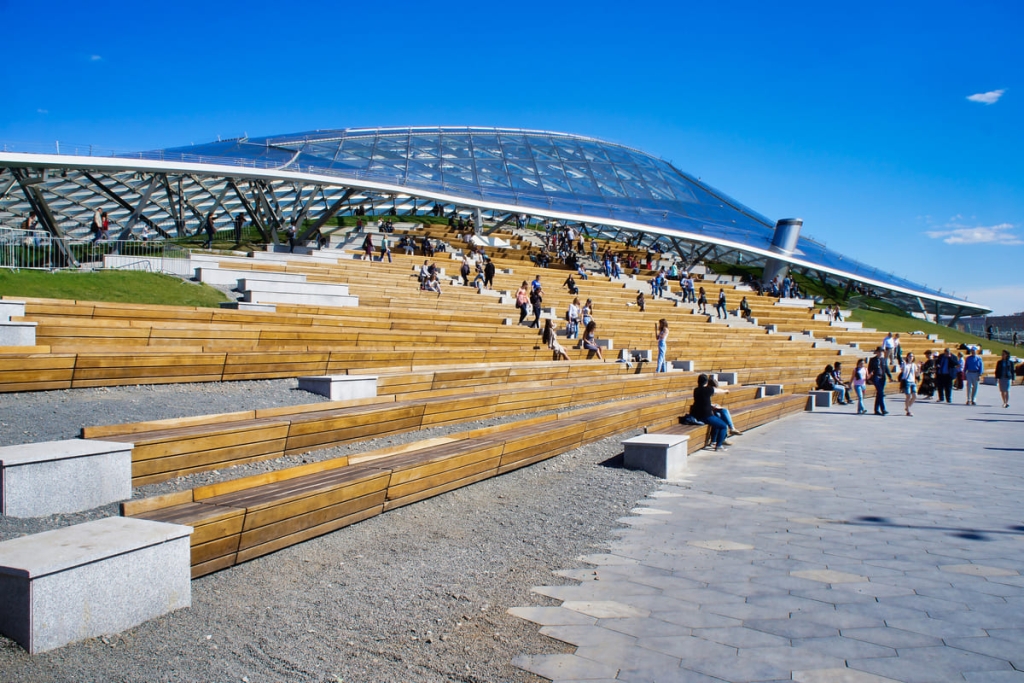 „Follow the Moskva, down to Gorki Park…” Beim Namen Moskaus berühmtester Grünfläche dürften viele Besucher automatisch zu pfeifen anfangen. Viel ist seit dem Skorpions Hit aus den Neunzigern passiert, doch der größte Park Moskaus lockt Besucher immer noch mit seinen gepflegten Grünflächen und der bunten Blumenpracht. Bereits das Haupteingangstor ist hübsch anzusehen. Danach geht es weiter zum künstlichen See mit seinem Springbrunnen. 1,2 Quadratkilometer groß ist der Gorki-Park. Falls euch die Laufwege zu weit werden, leiht ihr euch einfach ein Fahrrad aus. Im Sommer dient der Park als Veranstaltungsort für Konzerte, während im Winter einige Wege in Schlittschuhbahnen verwandelt werden. Restaurants, Cafés und Eisdielen laden zum Verweilen ein, und kulturell Interessierte besuchen „Garage“, ein Museum für moderne Kunst. Etwas kleiner ist Moskaus älteste öffentliche Gartenanlage: Der Sarjadje-Park ist 79.000 Quadratmeter groß und besitzt neben malerischen Grünanlagen und kleinen Seerosenteichen auch zwei Amphitheater, eine künstliche Eishöhle und Ausstellungen zur Geschichte Russlands. Architektonisch beeindruckend ist die frei schwebende Brücke, von der aus ihr einen herrlichen Ausblick über die Moskva genießt. Insgesamt ein empfehlenswerter Mix aus Natur, Kultur und Hightech – typisch für das moderne Moskau.