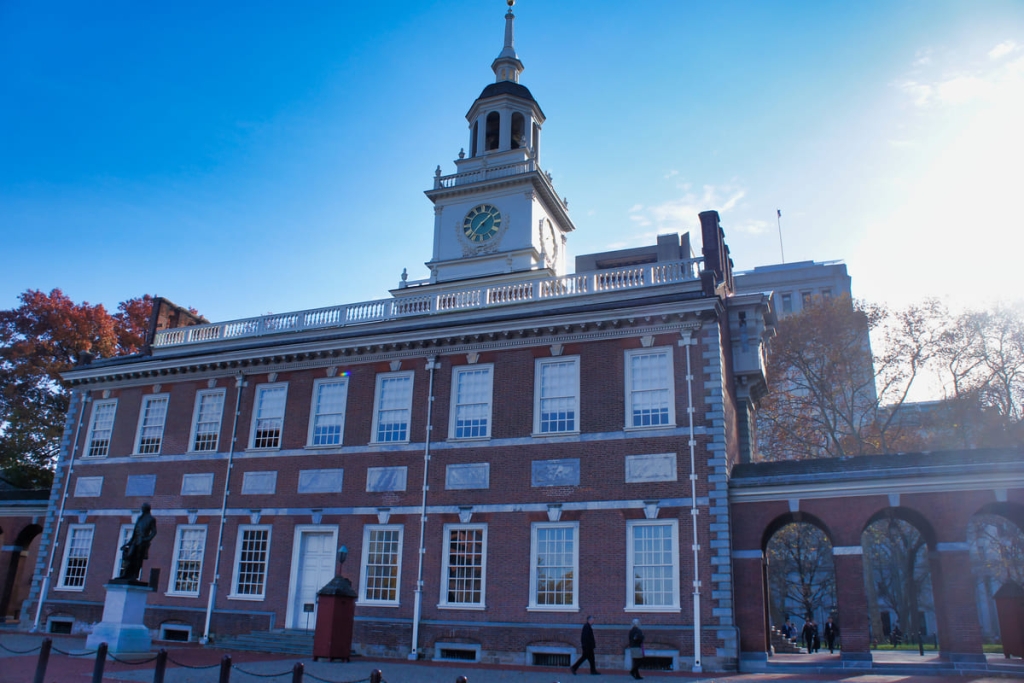 Die Independence Hall wirkt heute etwas verloren zwischen den umliegenden Hochhäusern, ist jedoch von höchster historischer Bedeutung. In dem roten Backsteingebäude, der es sogar auf die Rückseite der Hundert-Dollar-Note geschafft hat, tagte 10 Jahre lang der Kongress der Vereinigten Staaten. Im Jahr 1776 fiel hier mit der Unterzeichnung der Unabhängigkeitserklärung der eigentliche Startschuss für die junge Republik. Kein Wunder, dass die Independence Hall zum UNESCO-Weltkulturerbe erklärt wurde. Das Gebäude dürft ihr nur mit einer Tour besichtigen. Diese dauert 30–40 Minuten und beginnt mit einer Einführung durch euren Guide. Danach geht es in das ehemalige Gerichtsgebäude Pennsylvanias. Highlight der Tour ist die Assembly Hall, in der sich die 13 Kolonien Amerikas von Großbritannien lossagten. Auf dem Tisch steht noch das Tintenfass, mit dem das wichtigste Dokument der USA angeblich unterschrieben wurde. Wenn ihr im Winter kommt und Glück habt, nimmt euch euer Guide noch zur Empfangsgalerie im ersten Stock mit. Der Eintritt zur Independence Hall ist kostenlos, zur Hochsaison zwischen März und Dezember benötigt ihr jedoch ein Ticket. Dieses könnt ihr entweder am selben Tag beim Independence Visitor Centre abholen oder für eine Gebühr von 1 USD vorbestellen. Letzteres ist die sichere Option, da die Tickets schnell vergeben sind. Solltet ihr zufällig am 08. Juli in Philadelphia sein, könnt ihr beim Independence Square dabei zusehen, wie die Unabhängigkeitserklärung von verkleideten Schauspielern vorgelesen wird.
